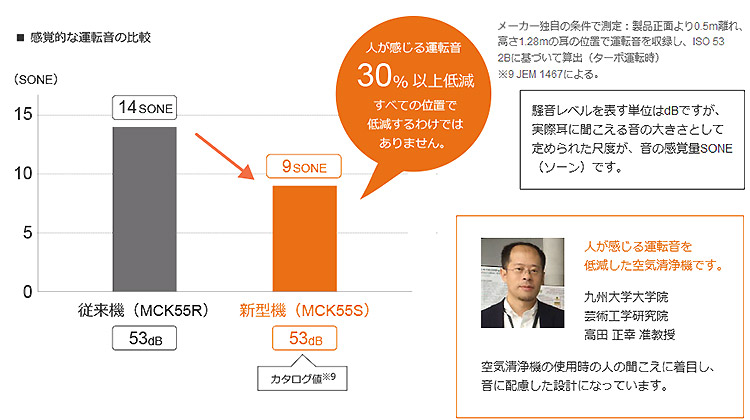 人が感じる運転音の低減で、寝室や子供部屋でもより快適。